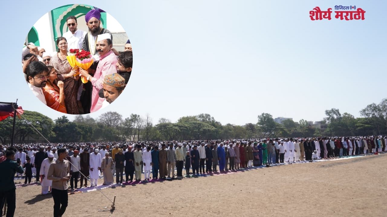 Nashik News: रमजान ईद निमित्त नाशिक शहरातील ईदगाह मैदानावर मोठ्या उत्साहात नमाज पठण पार पडले. या पवित्र सणा निमित्ताने नाशिक महानगरपालिकेच्या महापौर हिमगौरी आहेर आडके यांनी उपस्थित मुस्लिम बांधवांना रमजान ईदच्या मनःपूर्वक शुभेच्छा दिल्या. नमाज पठणानंतर मुस्लिम बांधवांनी एकमेकांना सदिच्छा देत आनंद व्यक्त केला. यावेळी महापौर हिमगौरी आहेर आडके, उपमहापौर विलास शिंदे, खासदार राजाभाऊ वाजे, माजी उपमहापौर तथा नगरसेवक प्रथमेश गीते, माजी विरोधी पक्ष नेत्या तथा नगरसेविका हेमलता पाटील, नगरसेविका नजिया अत्तार, म्हाडाचे अध्यक्ष नामदार रंजन ठाकरे, माजी सभागृह नेते डॉ. सुभाष देवरे, माजी नगरसेवक गुलजार कोकणी, बबलू खैरे,स्वप्नील पाटील यांच्यासह नाशिक शहर पोलीस उपायुक्त किरण चव्हाण व मोनिका राऊत माजी पोलीस उपायुक्त मकरंद रानडे,जनसंपर्क अधिकारी योगेश कमोद आदी मान्यवर उपस्थित होते.